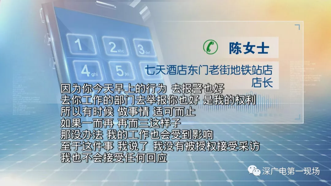 記者又聯(lián)系到了7天酒店東門老街地鐵站店長陳女士,同樣沒有得到正面的回復(fù)。