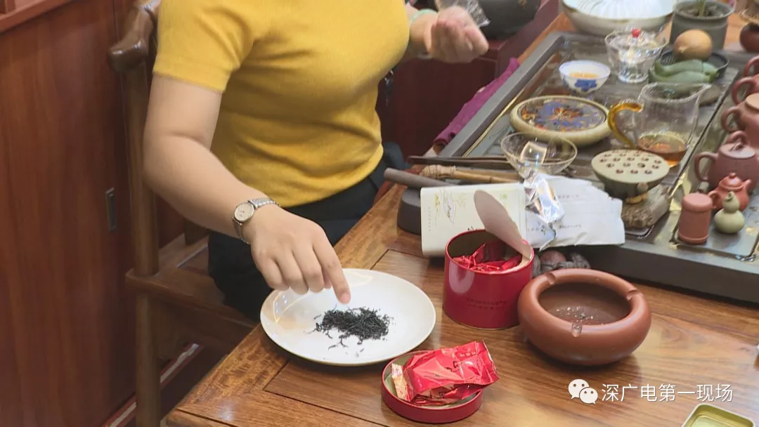 今天,記者也來到位于景田片區(qū)的中國茶宮茶葉批發(fā)市場,一家長期經(jīng)營紅茶的店家介紹,他們店就賣有正山小種和白茶,記者也拿出了劉女士在停車場購買的茶,和店家銷售的正山小種做了對比。店家介紹,停車場售賣的正山小種茶,一小包為標準的5克包裝,分量倒沒有問題,但茶葉外觀和口感上就有說頭了。
