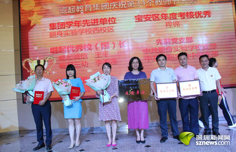 深圳新聞網(wǎng)訊 (記者 曹園芳)2018年9月10日,崛起教育集團(tuán)在崛起實驗中學(xué)舉行慶祝第34個教師節(jié)暨表彰大會。崛起教育集團(tuán)董事局主席林良浩、集團(tuán)旗下各學(xué)校領(lǐng)導(dǎo)、優(yōu)秀教師代表、教職工代表,以及深圳市寶安區(qū)教育局副局長、寶安區(qū)教育科學(xué)研究院院長、寶安區(qū)教育局民辦教育管理科科長、寶安區(qū)民辦教育協(xié)會秘書長、寶安區(qū)教育局第一學(xué)區(qū)教育辦主任、寶安區(qū)教育局第三學(xué)區(qū)教育辦主任等來自社會各屆的領(lǐng)導(dǎo)、嘉賓出席了大會。