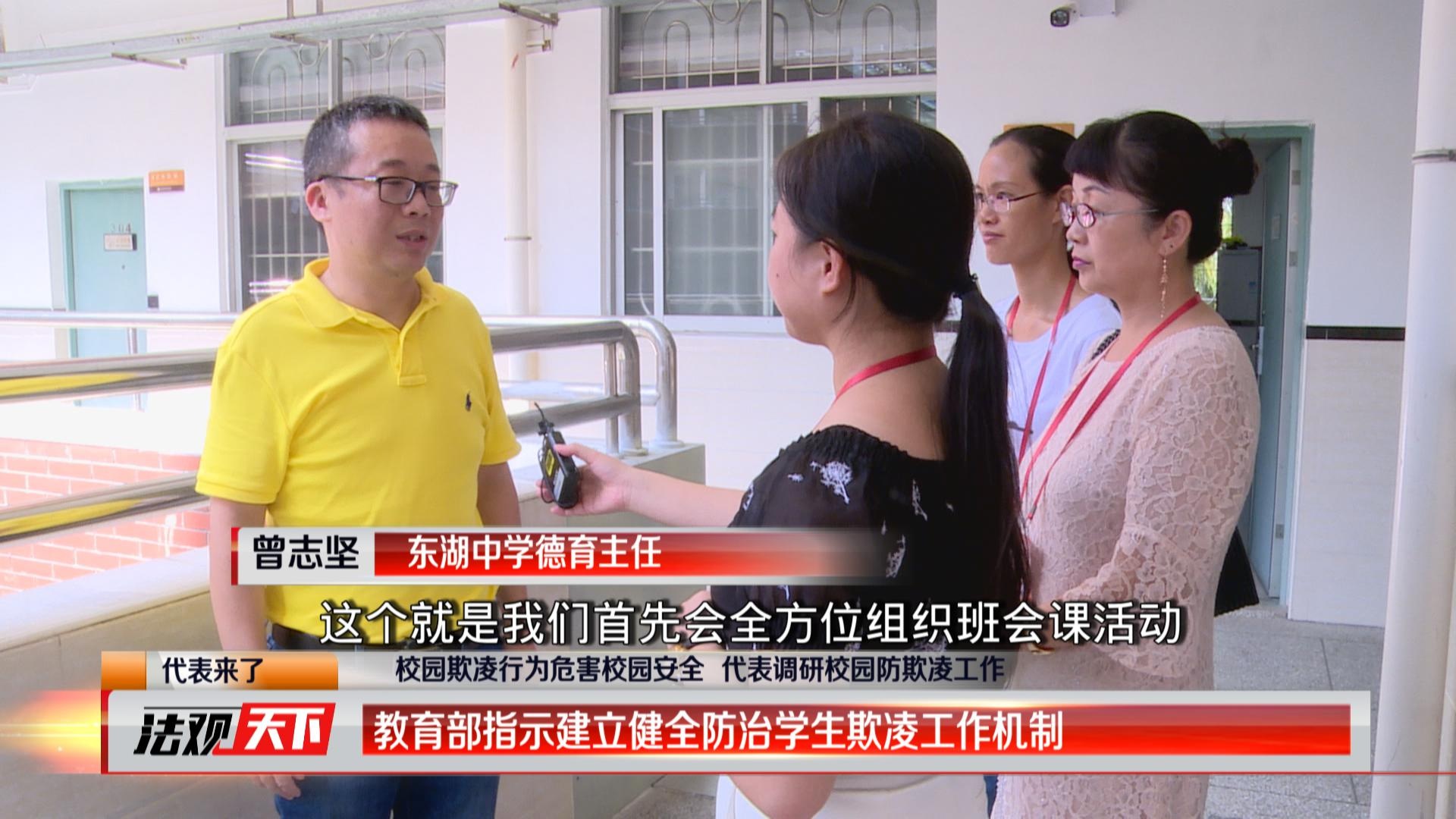 根據(jù)教育部的指示,各教育部門要協(xié)調(diào)組織相關(guān)部門建立健全防治學(xué)生欺凌工作機(jī)制,推動(dòng)綜治、法院、檢察院、公安、民政、司法、人力資源社會(huì)保障等部門及共青團(tuán)、婦聯(lián)、殘聯(lián)等組織落實(shí)職責(zé)分工,加強(qiáng)協(xié)作,共同治理。東湖中學(xué)朱海珊校長(zhǎng)表示,通過開設(shè)校園欺凌舉報(bào)信箱、展開主題班會(huì)課、宣傳欄定期宣傳等方式,目前校園防欺凌工作取得不錯(cuò)的效果,至今校園內(nèi)還未收到欺凌的舉報(bào)。