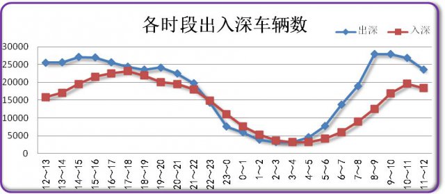 繼22日出入深平穩(wěn)有序的狀況,今天目前我市主要出入深道路運(yùn)行正常,從6時(shí)開(kāi)始,出深車流開(kāi)始增加,8時(shí)至9時(shí)達(dá)到峰值,達(dá)2.8萬(wàn)輛次,整體行車狀況較好,道路較為通暢。