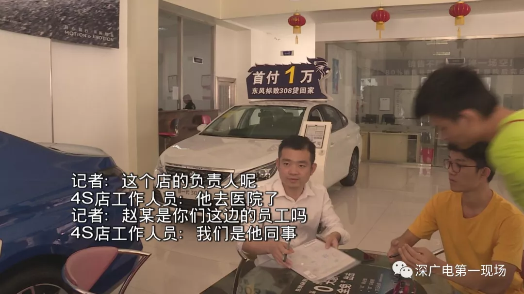 今天上午,記者也來到了東風(fēng)標(biāo)致卡瑞4S店,并沒有找到涉事的趙某?,F(xiàn)場工作人員表示,負(fù)責(zé)人有事沒在,而這個(gè)趙某,確實(shí)是銷售部的員工。