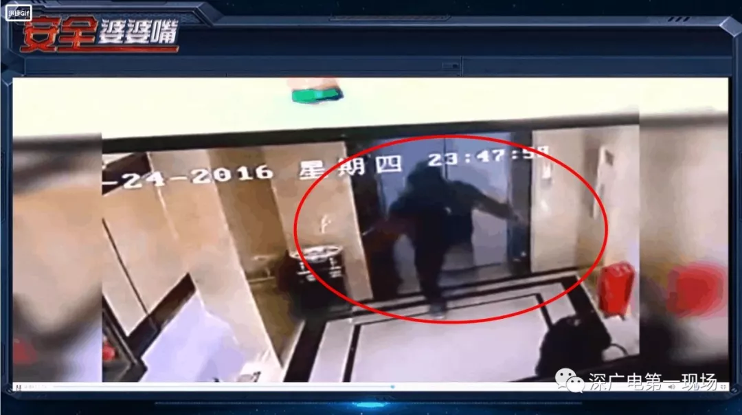 這名男子也是從遠(yuǎn)處飛奔向電梯一腳就踹開(kāi)了廂門(mén),然后不小心踏空掉下了電梯井。