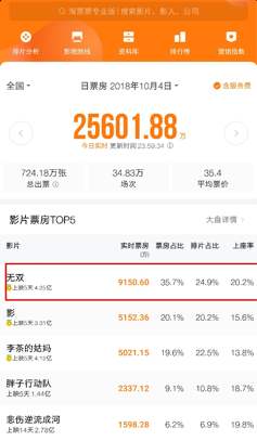 截止10月5日凌晨,《無雙》累計票房4.25億