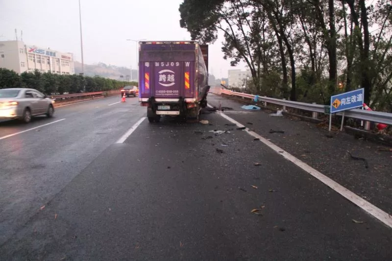 04時35分,其駕車沿南光高速由南往北方向行駛至塘明路段,被后方的粵B5J0**號輕型廂式貨車追尾。