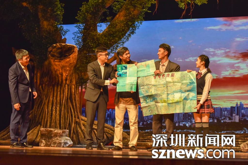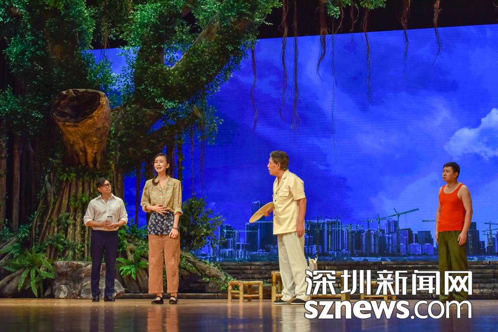 據(jù)介紹,話劇《大榕樹下》采取縮小光圈反映大主題的方式,把家國情懷、時代變革作為一個大的背景,用老百姓的視角來審視這四十年的變化,講述招商銀行、平安集團(tuán)、華為、騰訊等重要深圳企業(yè)的故事,并且展現(xiàn)一個個鮮活生動的“深圳人”?!洞箝艠湎隆饭灿?6個角色、40多位演員、30位工作人員的龐大陣容,由本土編劇、本土導(dǎo)演、本土演員演繹本土故事,其中編劇兼總導(dǎo)演孫清河,導(dǎo)演梅玉文、汪洋,藝術(shù)總監(jiān)從容,制作人劉子源及一眾演員全是本土力量,是深圳建市以來第一部真正意義上的大型原創(chuàng)本土話劇。據(jù)悉,此輪登陸深圳大劇院后,《大榕樹下》還將不斷完善調(diào)整,在深圳十個區(qū)巡演,在廣東省巡演,并代表深圳進(jìn)京演出。