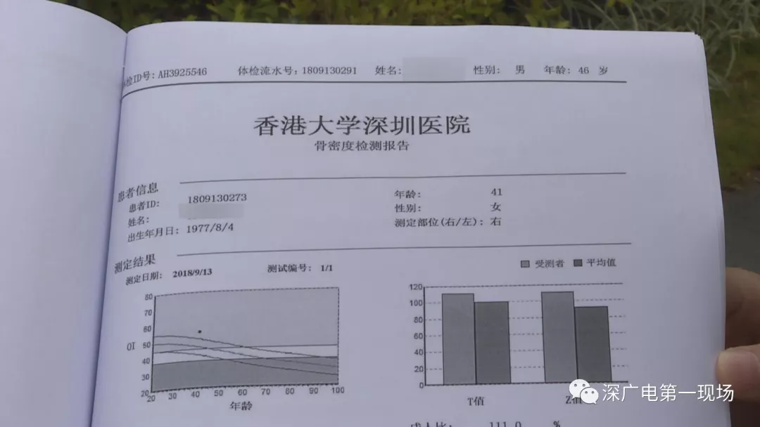 李先生也向記者展示了自己的這份體檢報(bào)告,在體檢報(bào)告的封面上,確實(shí)是李先生的信息,然而就在骨密度的檢查結(jié)果頁(yè)面中,顯示了一位女性的個(gè)人信息,其中名字年齡都有,但是在頁(yè)眉上,還是李先生的體檢流水單號(hào)。