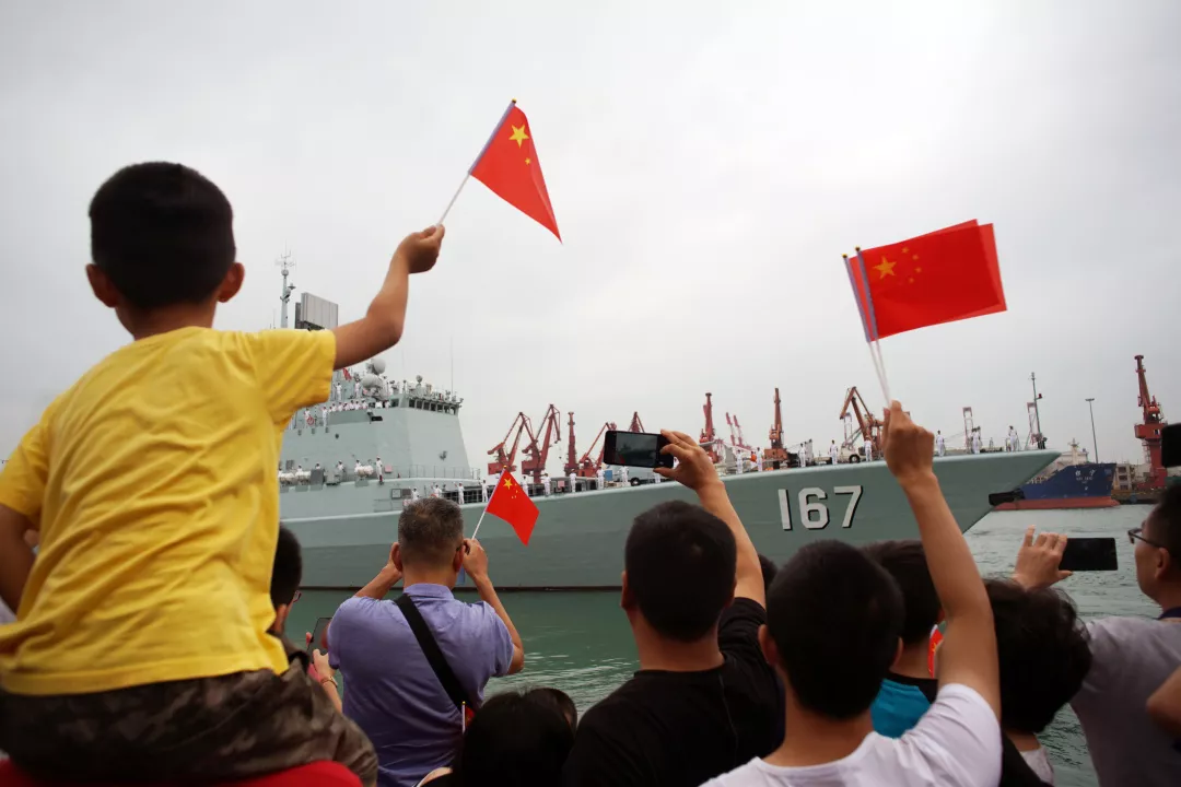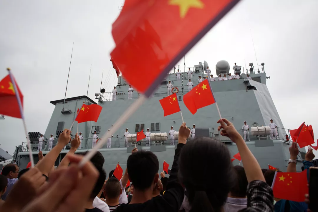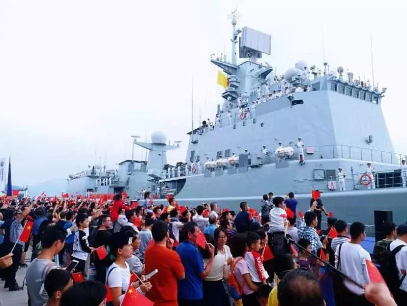 ▲深圳艦結(jié)束為期4天的訪深行程返回湛江母港,數(shù)百市民自發(fā)歡送10月20日下午3時許,蛇口郵輪母港碼頭早已聚滿了自發(fā)前來為深圳艦送行的數(shù)百名市民群眾。碼頭上,市民揮舞著五星紅旗,高呼:“歡迎深圳艦再回來!”艦艇上面,全體海軍官兵站立艦舷向市民敬禮,隨著一聲長長的汽笛聲,海軍深圳艦艦艏犁開海面,拖著長長的尾跡,帶著深圳第二故鄉(xiāng)人民的殷殷離別之情,起航駛向湛江母港。