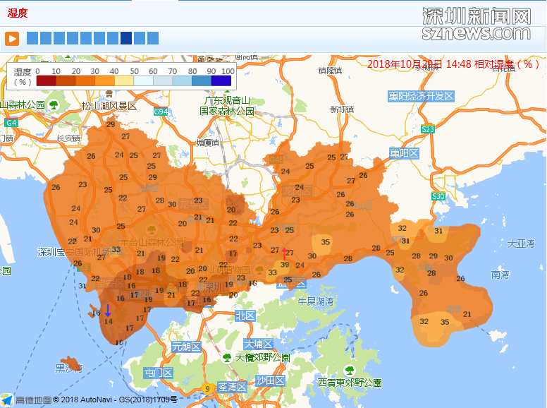 深圳新聞網(wǎng)10月29日訊(記者 陳婕)29日,深圳市最高氣溫直逼30度,與此對(duì)應(yīng)的是,今日最低相對(duì)濕度24%,比今日歷史最低值25%(1978、1991年)還要干,真叫一個(gè)晴朗干燥。