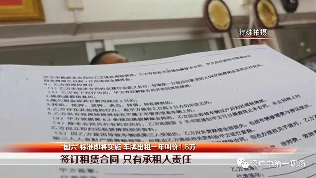 車牌、指標的錯位市場,衍生了車牌出租的利益。二手車行在這過程中處于主導的地位,他們規(guī)定在車牌租用之前,承租人需要簽訂一份租賃合同,按理說合同應該劃分雙方的責任,然而記者發(fā)現(xiàn),合同明確指出了租牌者違約應當承擔的責任,條款多達10多項。