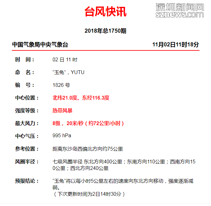 深圳新聞網(wǎng)11月1日訊(記者陳婕)臺風“玉兔”對深圳市風雨影響已減弱,深圳市氣象臺于11月2日12時5分在全市取消臺風白色預警。臺風“玉兔”帶著成為風王呼風喚雨的心出發(fā),最后岸都沒上,就乖乖走了。只能說,沒來過,但吹過。