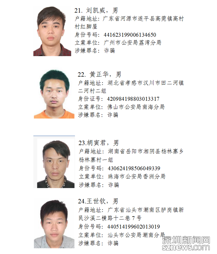 深圳新聞網(wǎng)11月5日訊(記者何暢)廣東省公安廳近日發(fā)布懸賞通告:廣東省公安廳決定從即日起公開(kāi)懸賞通緝30名在逃涉盜搶騙犯罪嫌疑人,希望廣大人民群眾積極提供在逃犯罪嫌疑人線索。
