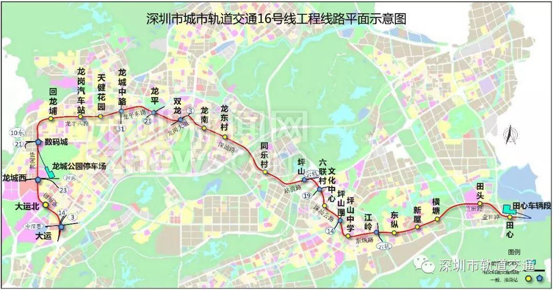 站點設置: 崗廈北、黃木崗、清水河、布吉、石芽嶺、六約北(增設)、四聯(lián)、坳背、大運、南約、寶龍(增設)、沙湖、坪山圍、坪山廣場站(增設)、朱洋坑、坑梓、沙田(站名尚未最終確定,最終線站位方案和站名以市政府批復為準)
