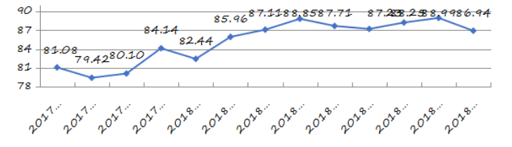圖8坪山區(qū)城市交通文明指數(shù)走勢圖(計量單位:分)