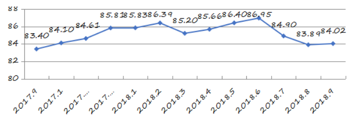 國家統(tǒng)計局深圳調查隊編制9月份深圳市城市交通文明指數(shù)為87.02分,比上月增加0.05分,比上年同期增加2.06分;深圳市城市交通文明進步指數(shù)為-0.05 % (見圖1)。