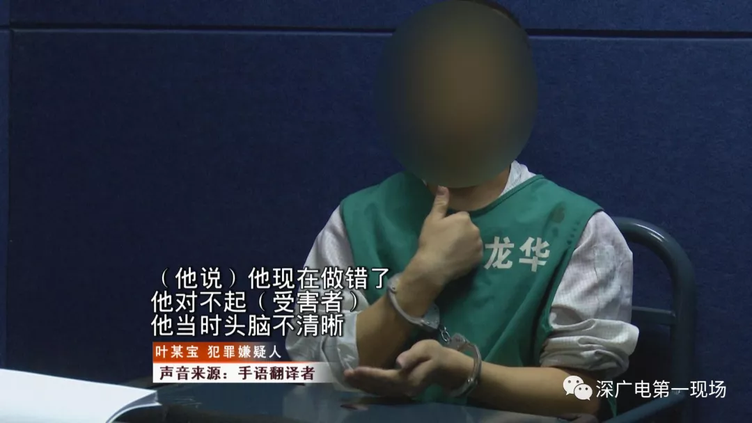 今天上午,記者在龍華油松派出所,見到了犯罪嫌疑人葉某寶。葉某寶是安徽人,今年31歲,在龍華區(qū)某工廠工作。在采訪時,記者發(fā)現(xiàn),犯罪嫌疑人葉某寶是名聽障人士,通過手語交談后了解到,11月2號晚上七點多,他途經(jīng)建設(shè)東路人行天橋時,對小王起了“歹心”。