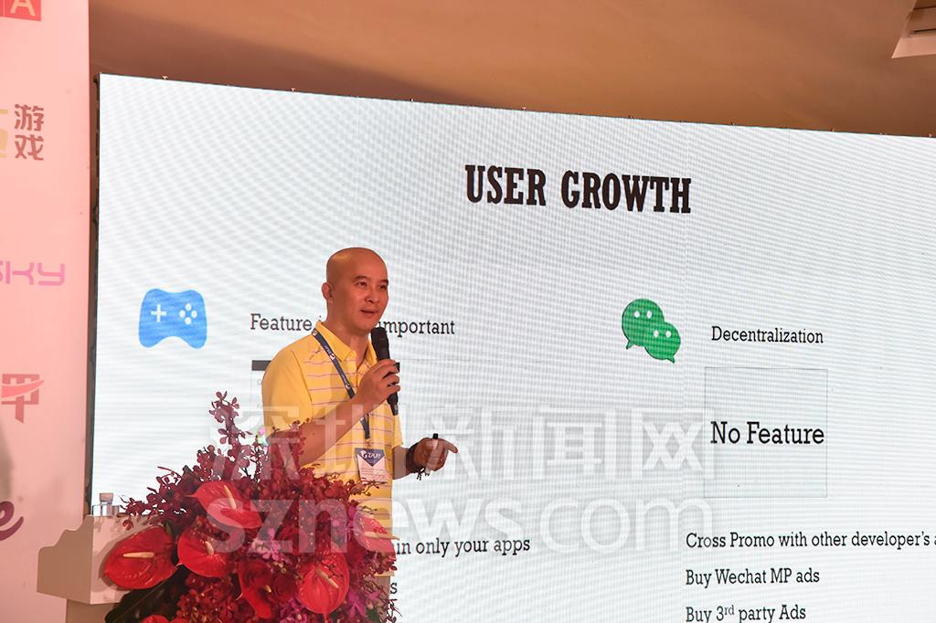 趣加科技(Funplus)的首席運(yùn)營官陳琦現(xiàn)場演講