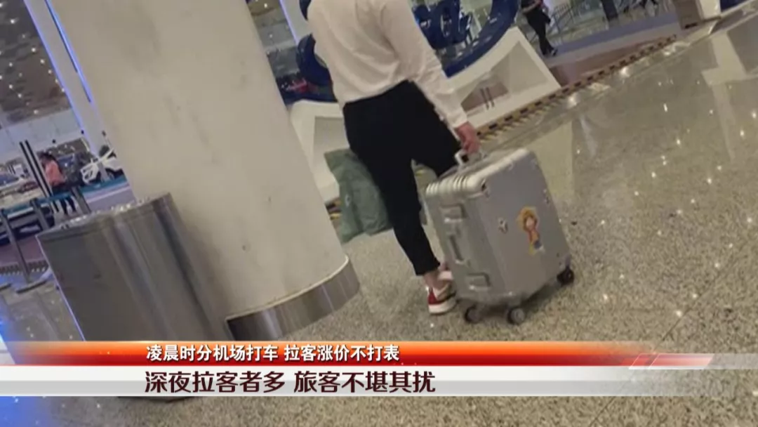 針對黃先生反映的情況,記者在晚上11點鐘來到機場實地調(diào)查。在機場到達大廳的出入口,記者看到兩名男子站在出口位置,詢問出來的旅客,是否需要打車,一看到附近有機場安保人員出現(xiàn),兩名男子便立刻轉(zhuǎn)身離開。