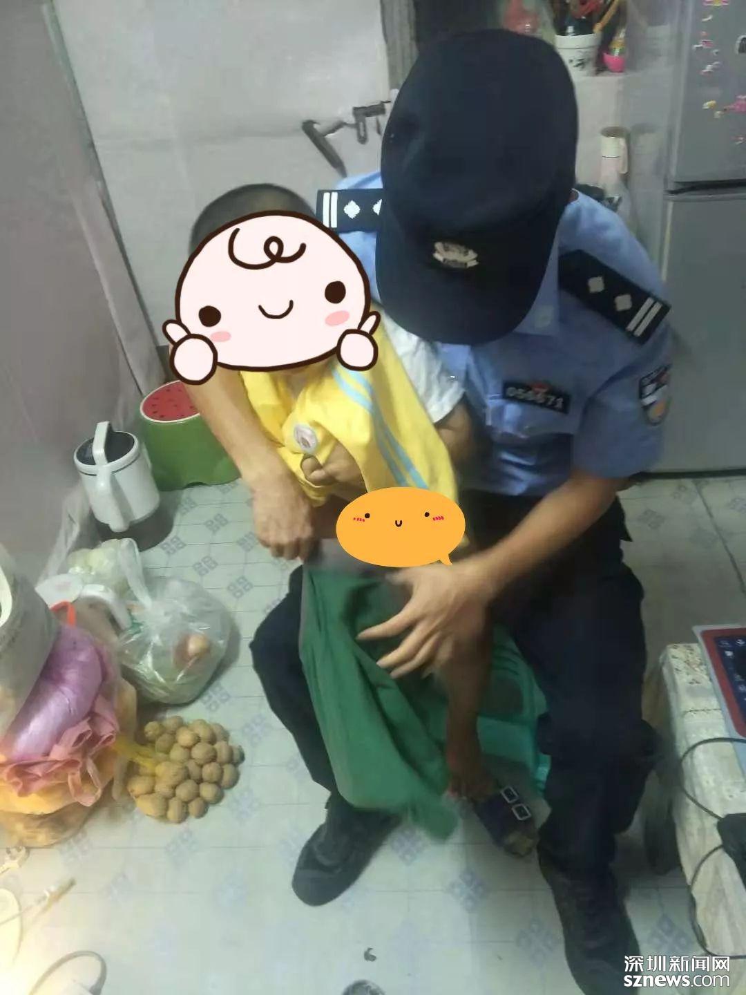 凌晨四時(shí)許,巡邏民警郭強(qiáng)途經(jīng)轄區(qū)深圳兒童樂園門口附近,發(fā)現(xiàn)一個(gè)兩歲左右的小男孩,像受到驚嚇的小鹿般恐慌不已,身上只穿了件白色小T恤,連褲子都沒穿,微風(fēng)晨露讓小孩瑟瑟發(fā)抖,滿是無助的樣子。