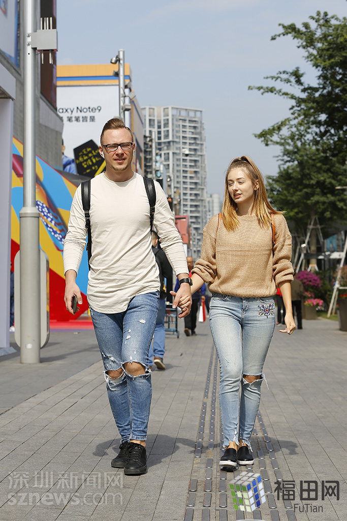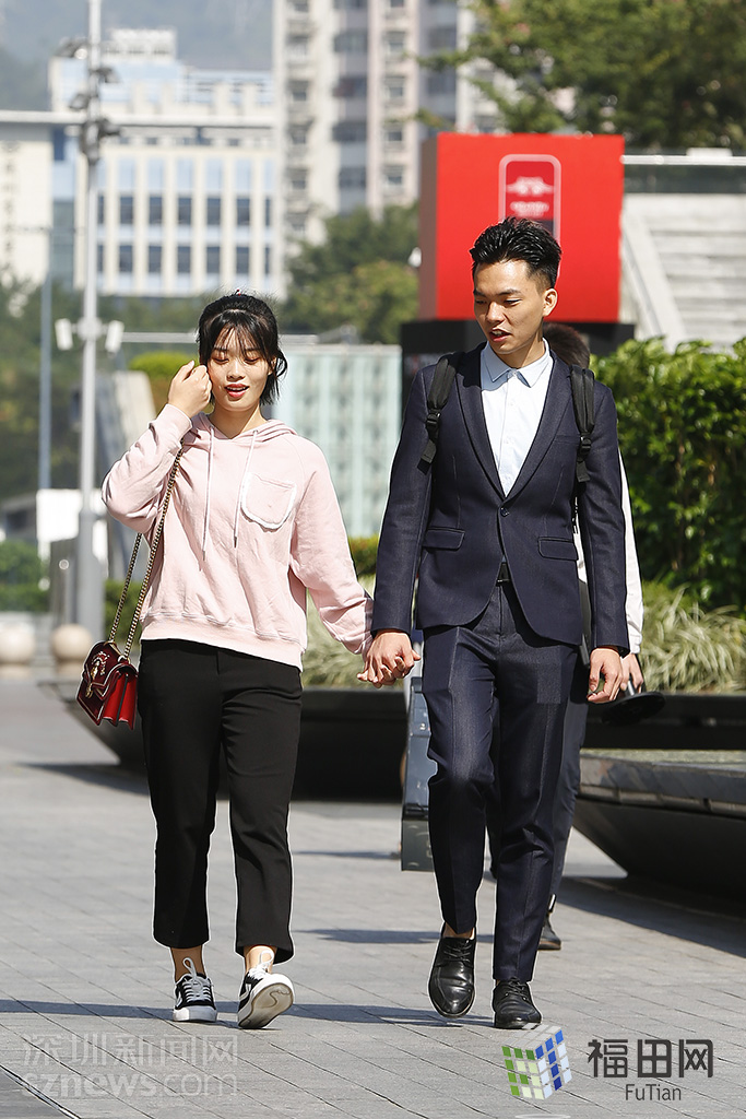 降溫天里更顯溫暖的情侶。