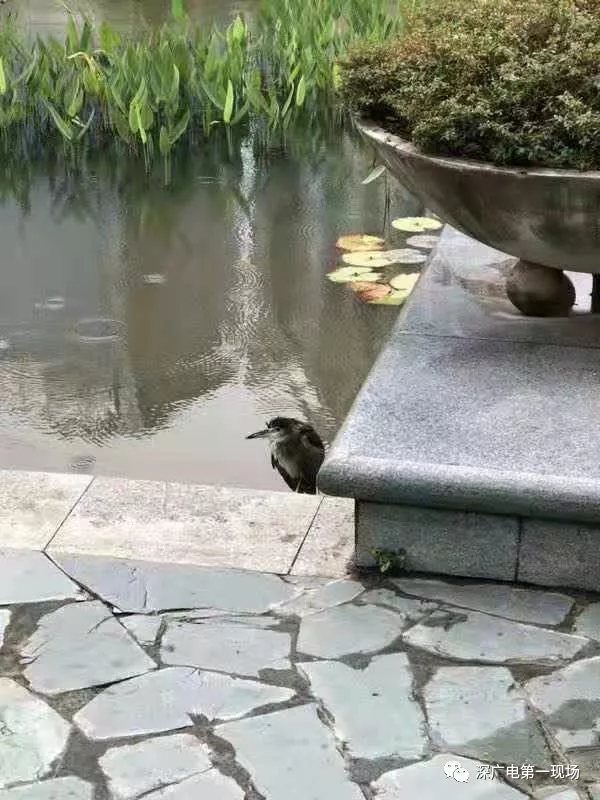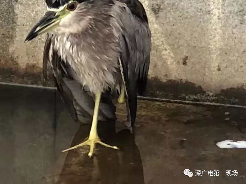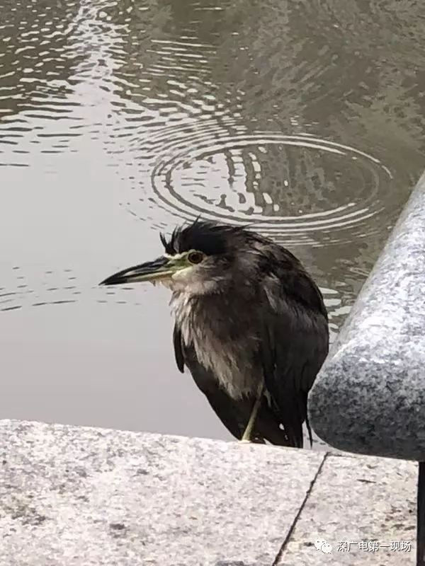 公園的保安發(fā)現(xiàn)后,馬上致電深圳市野生動物保護協(xié)會,工作人員許先生到場后,把這只夜鷺解救上岸。