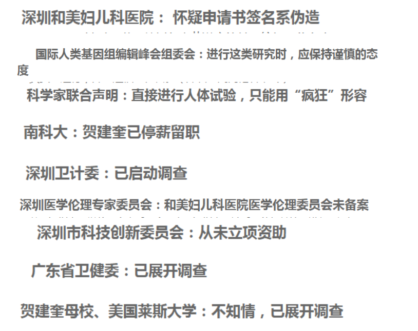 此事件涉及的多個(gè)部門(mén)也撇清了與賀建奎的關(guān)系