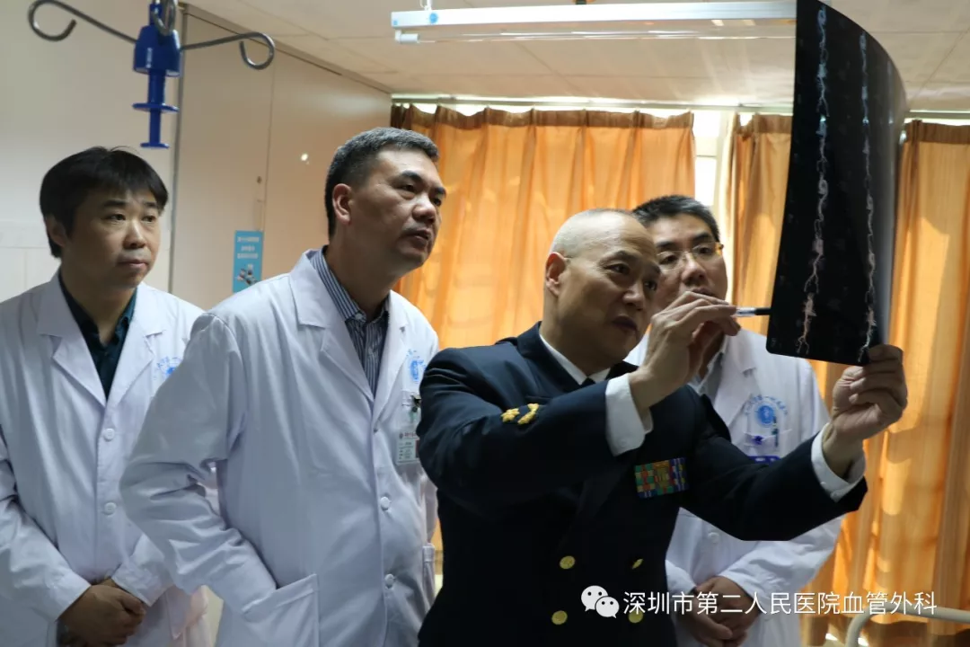 2018年11月30日,中國(guó)人民解放軍海軍軍醫(yī)大學(xué)附屬長(zhǎng)海醫(yī)院血管外科、心臟瓣膜疾病微創(chuàng)診治中心主任,上海市血管系統(tǒng)疾病臨床醫(yī)學(xué)中心主任,全軍血管外科研究所所長(zhǎng),中國(guó)醫(yī)師協(xié)會(huì)腔內(nèi)血管學(xué)分會(huì)(二級(jí))主任委員,國(guó)際知名血管外科專家景在平教授,來(lái)到深圳市第二人民醫(yī)院(深圳大學(xué)第一附屬醫(yī)院)(以下簡(jiǎn)稱“我院”)進(jìn)行座談、臨床查房、會(huì)診以及向全市住院醫(yī)師規(guī)培學(xué)員、教師與基地管理人員進(jìn)行專題學(xué)術(shù)講座。