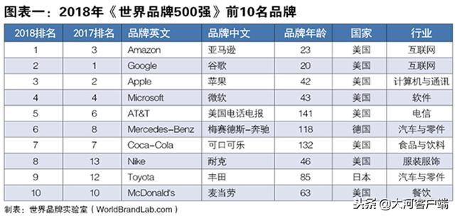 由世界品牌實(shí)驗(yàn)室(World Brand Lab)獨(dú)家編制的2018年度(第十五屆)《世界品牌500強(qiáng)》排行榜于12月18日在美國(guó)紐約揭曉。得益于人工智能和大數(shù)據(jù)技術(shù),去年的季軍亞馬遜(Amazon)一舉擊敗蘋(píng)果(Apple)榮登榜首,其第三季度營(yíng)業(yè)利潤(rùn)創(chuàng)10年新高;谷歌(Google)承襲科技優(yōu)勢(shì),在無(wú)人駕駛領(lǐng)域成績(jī)突出,位列第二;蘋(píng)果(Apple)退居第三。美國(guó)占據(jù)500強(qiáng)中的223席,穩(wěn)居品牌大國(guó)第一。中國(guó)入選的品牌只有38個(gè),與經(jīng)濟(jì)第二大國(guó)的地位并不匹配。其中表現(xiàn)亮眼的品牌有國(guó)家電網(wǎng)、騰訊、海爾、華為、青島啤酒、中化、五糧液、中國(guó)國(guó)航。