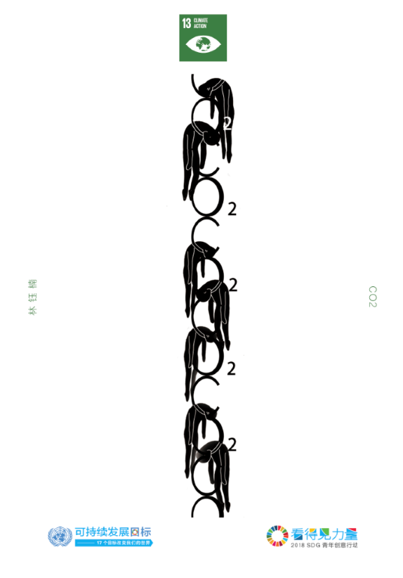 作品解釋 /海報(bào)的內(nèi)容是CO2形狀的繩索將人類(lèi)吊起窒息而死的畫(huà)面以此呼吁人類(lèi)重視二氧化碳問(wèn)題帶來(lái)的危害。