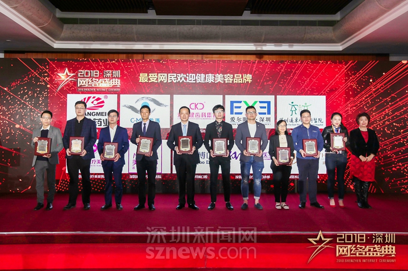“十大行業(yè)最受網(wǎng)民歡迎品牌”獎項(健康美容)獲獎代表上臺領(lǐng)獎