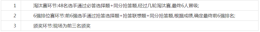 你熟悉改革開放的相關(guān)知識嗎? 你了解深圳這個改革開放窗口城市嗎? 你關(guān)注深圳特區(qū)的發(fā)展歷程嗎? 你知道深圳各大地標(biāo)嗎? …… 只要你有興趣 歡迎報名參加我們將選取 活動現(xiàn)場還有驚喜大禮等你哦大家千萬別錯過喲! 第一名將獲得華為P20手機一部 圖片來源:華為官方旗艦店 前6強選手將獲得豐厚獎品哦! 競賽流程 競賽規(guī)則 淘汰賽獎勵和規(guī)則 【獎勵】本次知識競賽共有七輪淘汰賽,將從48名參賽選手中,選出6位選手晉級排位賽。48名參選選手均將獲得手繪深圳景色明信片,6強選手都將獲得獎品。 【規(guī)則】淘汰賽中,所有選手都兩兩PK答題,號碼牌數(shù)字由選手自己盲選,號碼牌接近的兩人自動互為PK對手(1號牌 PK2號牌、3號牌 PK4號牌……依次對應(yīng)PK)。題目皆為選擇題,答案有A、B、C三個,選手要從中選出正確答案。誰答對的多誰贏,同分再搶答一題定勝負(fù),輸?shù)囊环阶詣犹蕴?/p> 排位賽規(guī)則 【總規(guī)則】所有選手都將分到一個搶答器,初始得分都為100分,比賽過程中選手們進(jìn)行搶答,答對得20分,答錯扣10分,提前搶答扣10分,每題答題時間10秒,答題超時扣10分。 排位賽共有20道搶答題,其中10題為選擇題,10題為聯(lián)想題: 【選擇題規(guī)則】選擇題答案有A、B、C三個,選手要從中選出正確答案,參賽選手必須在主持人喊出“開始”后,才可搶答,提前搶答扣分; 【聯(lián)想題規(guī)則】聯(lián)想題的每一道題的答案都是一個專有名詞,每道題目主持人會用較慢速描述該名詞開始,選手從主持人的描述中獲取線索,猜出答案,選手可隨時搶答。答對一題得20分,答錯扣10分。 了解清楚比賽流程和規(guī)則之后, 是不是想趕緊報名呢? 那么,具體如何參與呢? 報名方式 1、掃描下方二維碼進(jìn)入原文留言,回復(fù)“報名+姓名+電話”; 2、回復(fù)截止時間至2019年1月3日。如若報名成功,將會收到我們的回復(fù)通知; 3、本次活動免費報名,活動解釋權(quán)歸深圳發(fā)布廳所有。 期待你的參與! 快快報名吧! 內(nèi)容來源:深圳發(fā)布 如需轉(zhuǎn)載,請注明以上內(nèi)容