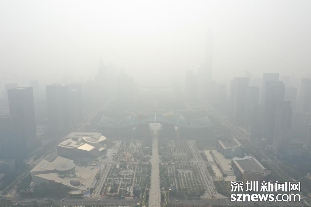 1月12日,霧霾襲深,深圳天氣君發(fā)布預(yù)警,今天最好不要在室外玩耍。記者中午用無人機(jī)航拍福田CBD區(qū)域,鏡頭下,市民中心和平安金融大廈兩個地標(biāo)幾乎無法辨別,新洲路上能見度很低,一切都仿佛浸在化不開的濃湯里。深圳天氣君在微博提醒:弱北風(fēng)影響下,不利于污染物擴(kuò)散,我市中西部地區(qū)下午會持續(xù)十面“霾”伏,灰霾黃色預(yù)警信號生效中,各位盡量不要長時間戶外活動。