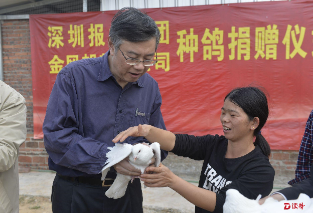 根據(jù)報(bào)業(yè)集團(tuán)“因戶制宜一戶一策”“一個黨支部結(jié)對一戶貧困戶”的安排,鐘仿明選擇養(yǎng)鴿脫貧,兩年多來,集團(tuán)金風(fēng)帆物業(yè)公司共計(jì)為他送來四批480對種鴿,還請來深圳光明農(nóng)場的技術(shù)員,對他進(jìn)行技術(shù)培訓(xùn)?!?80對種鴿全部成活!”1月20日下午,看到親自來送種鴿的陳寅等報(bào)業(yè)集團(tuán)領(lǐng)導(dǎo),鐘仿明拿出一面錦旗,非常激動地說:“感謝黨的好政策,感謝深圳報(bào)業(yè)集團(tuán)的真心幫扶!”