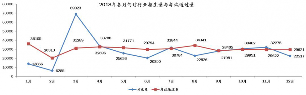 2018年全年行業(yè)累計招生33.7萬人,考試通過量共36.5萬人,累計考試通過量與招生量比值為108.3%。