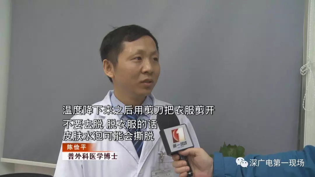 沖——立即脫離熱源,用流動(dòng)的冷水沖洗傷面,降低傷面溫度,減輕高溫進(jìn)一步滲透所造成的組織損傷加重。沖的時(shí)間越早越好。