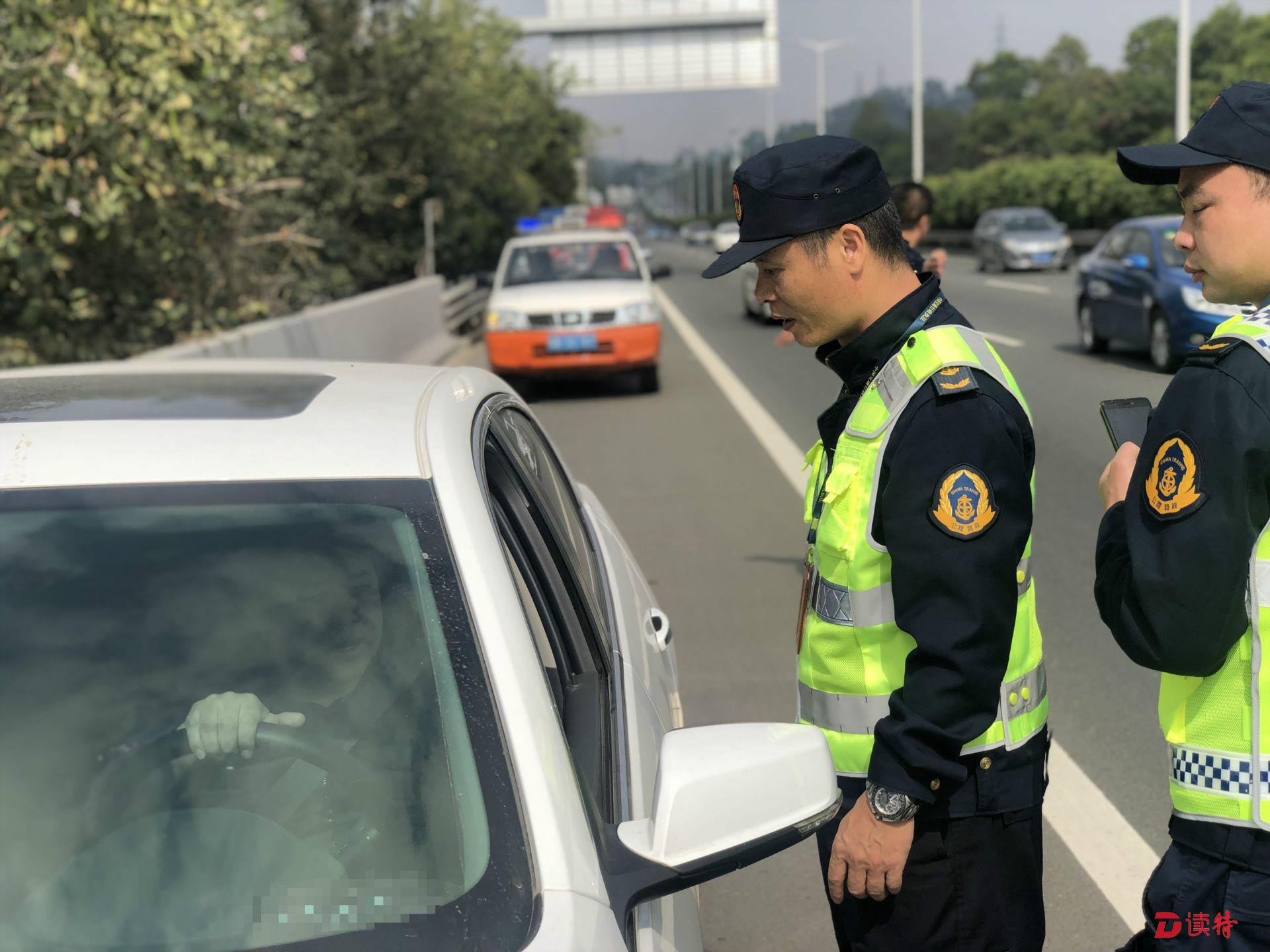 11:20,南光高速光明路段路邊應急車道上,有一輛小車??俊qR明海和開車的老林一起下車,走過去詢問。原來這輛小車爆胎了,正在等待維修廠送備胎過來。馬明海讓車內司機和乘客趕緊下車,盡量往路邊站。“以前高速公路上出過這樣的事故,小車拋錨后,車主沒有下車,結果后面的車輛沒注意撞上來,車內的人都沒了?!崩狭盅a充道:“下車后也不能站在車前或車后,這些位置都很危險,最好站到高速護欄的外面去等待救援?!笨吹綊佸^車輛后面只放了一個很小的三角架,馬明?;氐窖矙z車上,拿下來兩個反光錐放到小車后:“一定要讓其他車輛能很遠就看到這里有車輛???,千萬不能發(fā)生二次事故。”