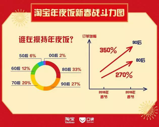 如今,80后已扛起年夜飯張羅大旗,成為臘月里下單年貨最多的群體,而90后增長迅速。