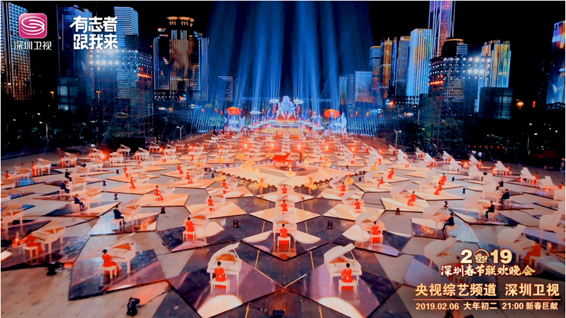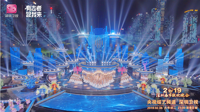 除夕之夜“深圳七分鐘”驚艷世人。晚會以天地為幕、城市為景,把43棟樓宇燈光秀與主舞臺的視頻效果完美融合,從而呈現出“春晚小舞臺,城市大舞臺”的震撼效果,將深圳這座城市的都市化、國際化氣質展現得淋漓盡致。