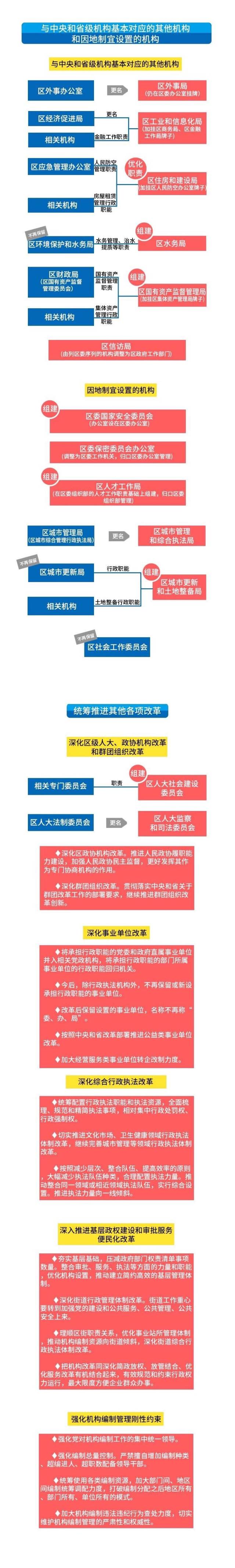 本次區(qū)級機(jī)構(gòu)改革,總的要求是中央及省明確的改革任務(wù)要堅(jiān)決落實(shí)到位,主要機(jī)構(gòu)設(shè)置同省、市保持基本對應(yīng)。同時(shí),又充分體現(xiàn)地方機(jī)構(gòu)綜合設(shè)置的特色,以推進(jìn)黨政機(jī)構(gòu)職能優(yōu)化協(xié)同高效為著力點(diǎn),改革機(jī)構(gòu)設(shè)置,優(yōu)化職能配置,深化轉(zhuǎn)職能、轉(zhuǎn)方式、轉(zhuǎn)作風(fēng),提高效率效能,積極構(gòu)建系統(tǒng)完備、科學(xué)規(guī)范、運(yùn)行高效的機(jī)構(gòu)職能體系,構(gòu)建簡約高效的基層管理體制。