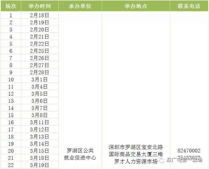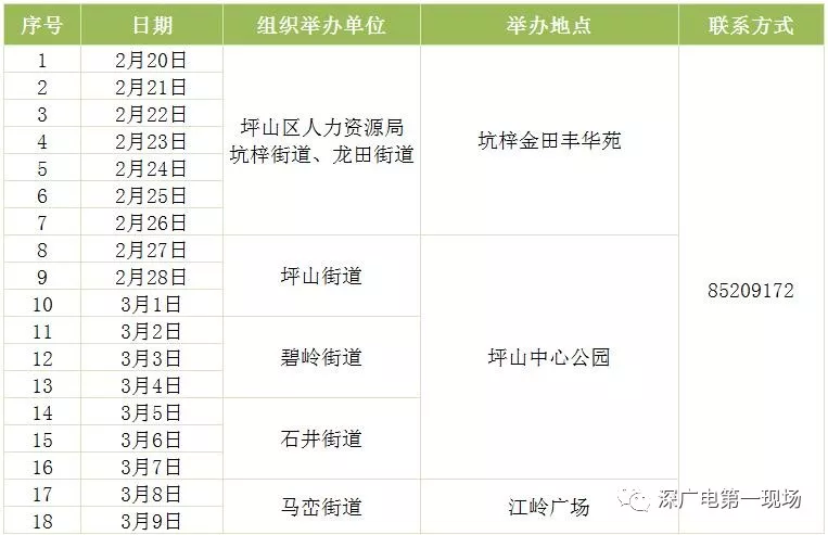 其中,深圳市公共就業(yè)服務(wù)中心26場,福田區(qū)27場,羅湖區(qū)40場,鹽田區(qū)14場,南山區(qū)9場,寶安區(qū)22場,龍崗區(qū)60場,龍華區(qū)56場,坪山區(qū)18場,光明區(qū)25場,大鵬新區(qū)9場。