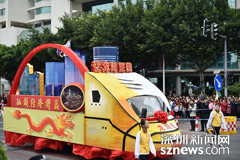 帶有汕頭經濟特區(qū)字樣的花車正在行進