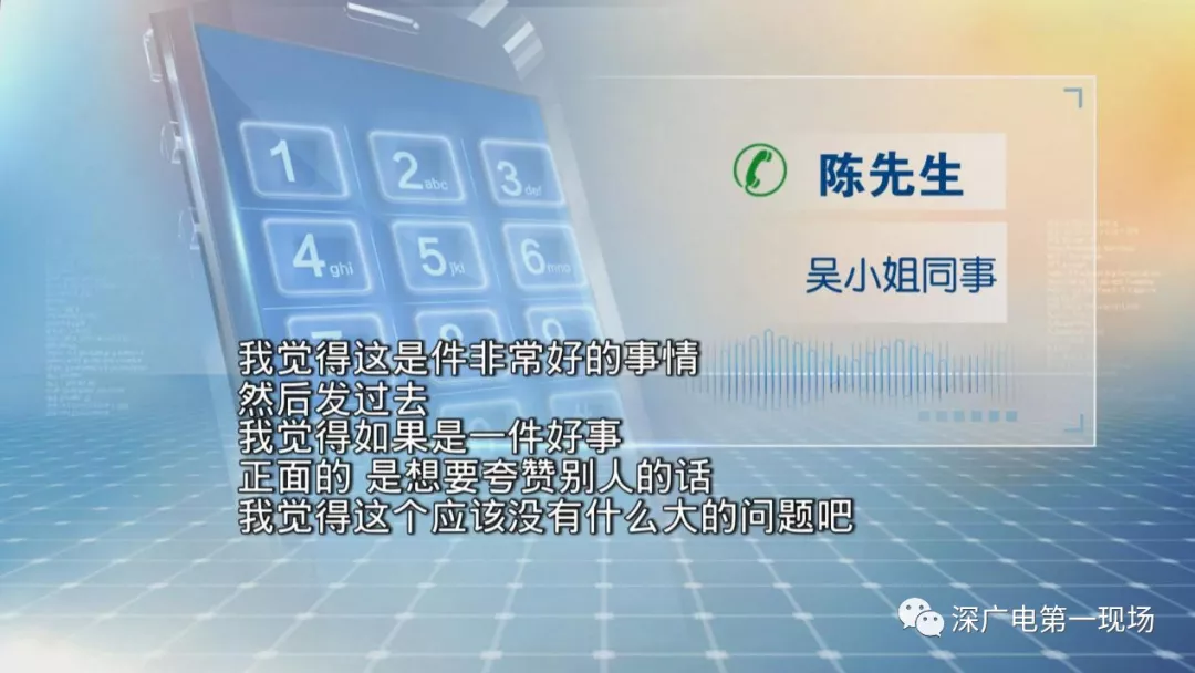 深廣電第一現(xiàn)場2019年2月19日訊 今年20多歲的吳小姐是深圳一家公司的員工。昨天晚上,吳小姐打開了公司的微信工作群,發(fā)現(xiàn)她的同事陳先生在工作群,發(fā)布了吳小姐之前參加選美比賽的相關(guān)宣傳報(bào)道,和領(lǐng)獎時候的照片,這讓吳小姐一下子驚呆了。