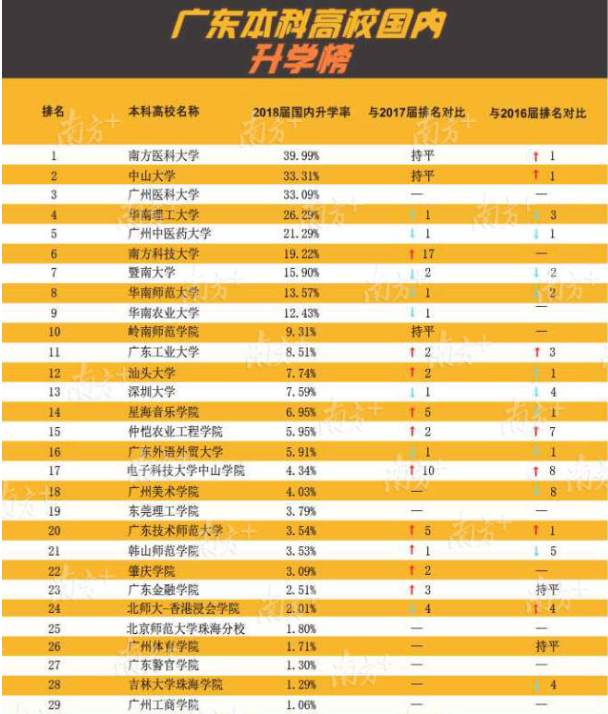 近3年各高職升學(xué)數(shù)據(jù)顯示,越來越多畢業(yè)生通過升學(xué)提升自身競爭力,尤其2018屆升學(xué)率增長明顯。其中有7所高職院校的畢業(yè)生升學(xué)率達到或超過7%,分別是廣州松田職業(yè)學(xué)院9.96%、廣東行政職業(yè)學(xué)院9.62%、廣東郵電職業(yè)技術(shù)學(xué)院8.73%、廣州華商職業(yè)學(xué)院8.06%、東莞職業(yè)技術(shù)學(xué)院8.05%、廣東水利電力職業(yè)技術(shù)學(xué)院7.73%和廣東科貿(mào)職業(yè)學(xué)院7.00%。
