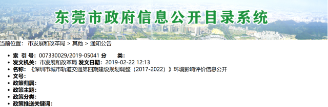 2月22日,東莞市發(fā)展和改革局在其官網(wǎng)發(fā)布了《深圳市城市軌道交通第四期建設(shè)規(guī)劃調(diào)整(2017-2022)》環(huán)境影響評(píng)價(jià)信息公開。