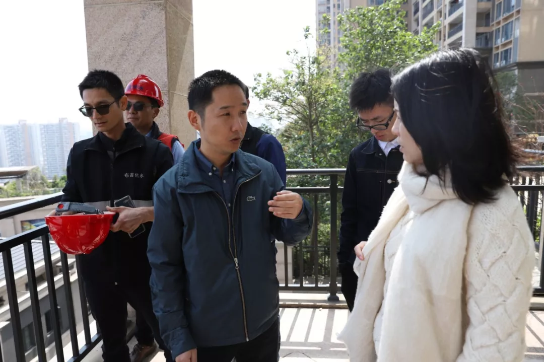 ▲水務(wù)局工作人員與紫瑞花園業(yè)委會(huì)代表進(jìn)行溝通