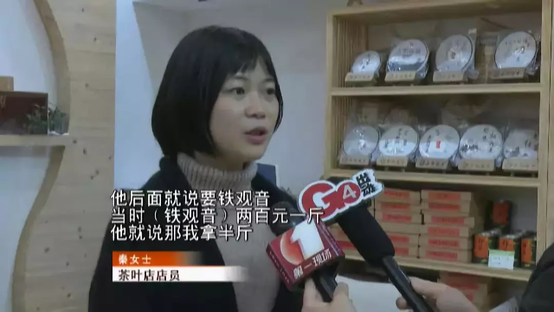 秦女士介紹,26日下午5點(diǎn)鐘左右,她和另一位店員正在包裝茶葉。正當(dāng)兩人忙活的時候,一位目測有40多歲的顧客突然進(jìn)店,說想要買點(diǎn)茶葉。秦女士回憶,那個人一進(jìn)來就問了有沒有一百塊的茶葉,她說沒有,然后這位顧客就問最便宜的茶是哪一種,最后說要買鐵觀音,而鐵觀音是200塊一斤,顧客表示要半斤。