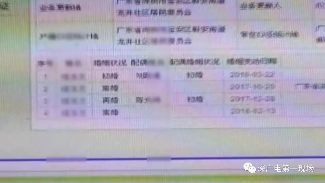 如此一來,伍小姐上段婚姻是初婚的說法也得到了證實。記者隨后陪同伍小姐來到登記其為結婚狀態(tài)的新橋街道沙企社區(qū)工作站。說明來意后,工作人員也對伍小姐的信息進行了核查。