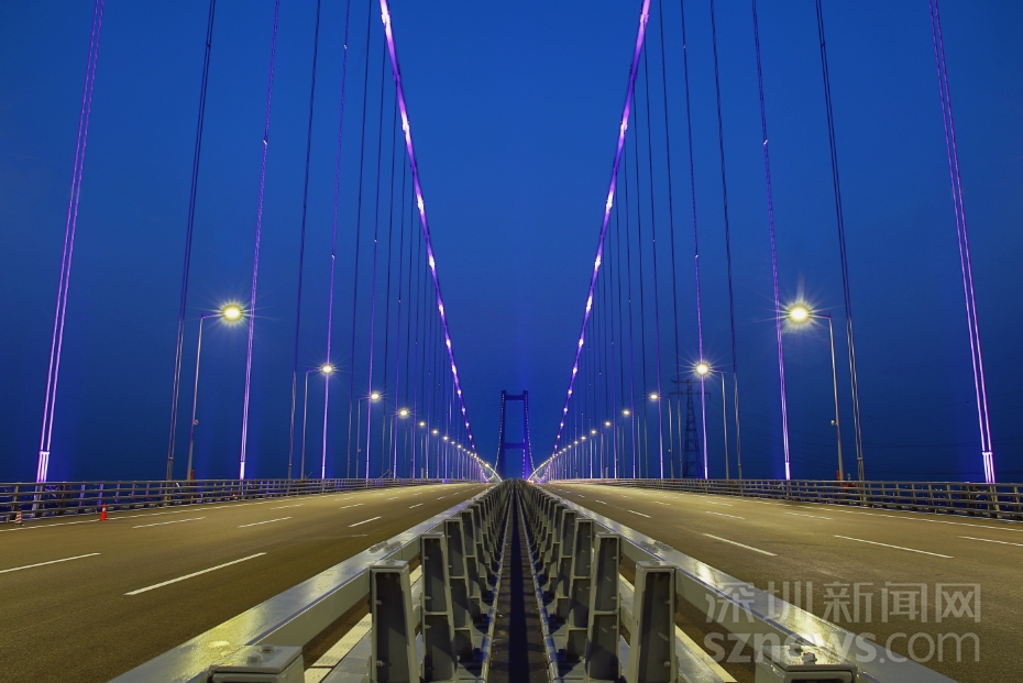 入夜后亮燈的虎門二橋(施工單位供圖)