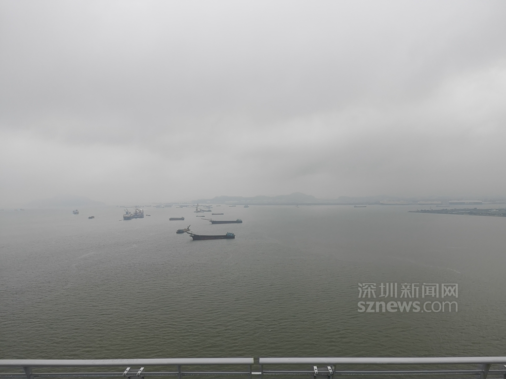 深圳新聞網(wǎng)記者劉彥蘭在虎門二橋的直播工作照
