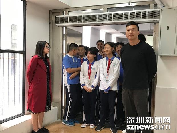 4月1日中午,深圳市福田區(qū)外國語學(xué)校校長丁長義跟學(xué)生一起在食堂就餐
